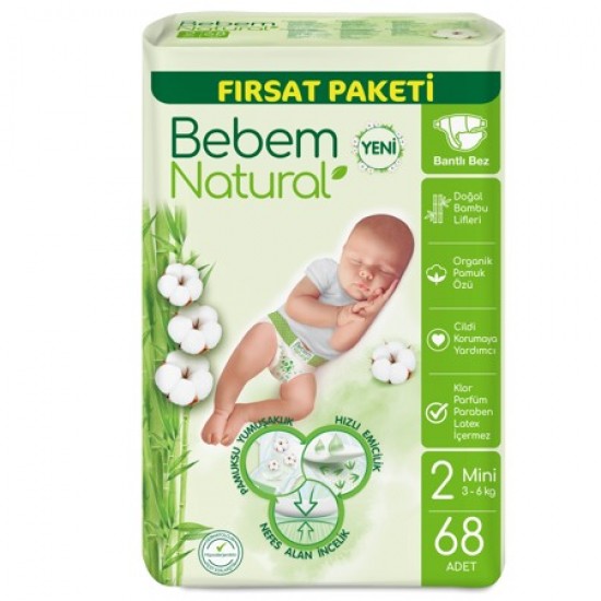 BEBEM NATURAL MİNİ 2 NO 3-6 KG 68 ADET