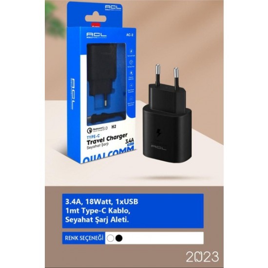 ACL USB-C WİRED 3.4A H2 DUVAR HIZLI SARJ ALETİ 18 WATT