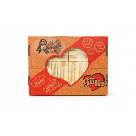 ARŞEL Güliz Vanilyalı Gofret 800 gr, çıtır gofret katmanları arasında yer alan yoğun vanilya kremasıyla hafif ve lezzetli bir atıştırmalık sunar. Her ısırıkta vanilyanın hoş aroması ve gofretin kıtır yapısı keyif verir.
