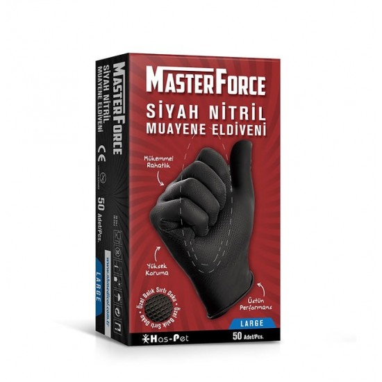 MASTERFORCE SİYAH NİTRİL ELDİVEN LARGE 50Lİ MFASL-02