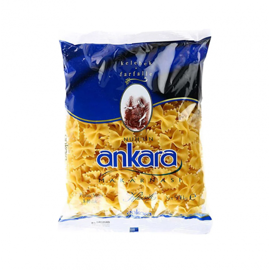 Doğal ve kaliteli malzemelerle üretilen Ankara Kelebek Makarna, sağlıklı ve besleyici bir tercihtir. 500 gramlık paketiyle pratik kullanım sunar ve mutfak işlerinizi kolaylaştırır.